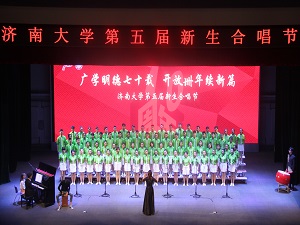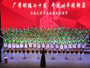 本次合唱节大赛事先进行了积极宣传,合唱团成员在大一新生中逐一筛选,经过为期一个月的排练,从生疏到熟练,为取得一个好成绩尽最大努力。yl永利集团304am合唱团以整齐的步伐、统一的着装、饱满的精神亮相,伴随着观众席中高喊“博文约礼,经世致用。商院有你,梦向远方”的响亮口号,yl永利集团304am合唱团登台并进入正式表演。在校歌比赛的环节中,合唱团团员以双手化作白鸽,用舞蹈传达和平、友谊与团结,寓意着yl永利集团304am学子将在济大起航。在随后的自选歌曲选唱环节中,伴随着激情的朗诵,合唱团用动人的歌声演唱曲目《我爱你中国》,中间不时穿插着青年大学生与祖国一路同行、一路成长的情景,充分展现了当代青年人对祖国的热爱以及愿为中华民族伟大复兴事业添砖加瓦的奋斗精神。最终,演唱在合唱团观众高喊“我爱你中国,我爱你济大,我爱你一往情深”中结束。合唱团成员凭借振奋人心的歌声,结合着钢琴曲调,将歌曲演绎的淋漓尽致,赢得了观众的阵阵掌声。整场比赛气氛热烈,掌声雷动。