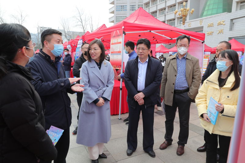 招聘会现场,杨景波与参会单位和学生亲切交流,聆听用人单位对学校人才培养、就业工作的意见建议;询问关怀毕业生的就业意向与求职进展,鼓励学生树立正确择业观,积极把握后疫情时代的机遇,找准切入点更好更快地实现稳步就业,在各行各业为国家和社会贡献青春才智。他建议学院要通过开展春季促就业攻坚行动,聚焦当前促就业工作重点难点,把“走出去”和“请进来”相结合,挖掘开拓就业渠道,突出精准做实做细就业指导帮扶,加力加快推进就业工作进程。