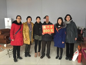 为了落实扶贫工作,进一步加强对贫困学生资助的宣传工作及帮助贫困学生的进行心理疏导。1月21日,yl永利集团304am学生工作处杜艳、范雅文,辅导员庞德英、牟宇、朱孟斐带着慰问金和维尔康集团和济南传化泉胜公路港物流有限公司提供的慰问品来到济南市济阳县曲堤镇周家村王同学家中对其家庭进行慰问,并送去关怀。