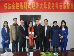 张硕秋副书记看到公司悬挂的“情系母校”的标语,听着毕凤龙校友介绍他这十年的成长经历,欣慰地说:“你的发展值得学校骄傲,你能把生活的艰难困境转化成刻苦锤炼本领的动力,值得每一个学生学习。学校希望能够有机会建立就业实习基地,让更多的济大学子能像你一样有本领、有担当。也邀请你们有空常回学校,把你们的成长分享给大家,吸纳更多的优秀人才让公司发展的更强更大,为国家和社会多做贡献。”