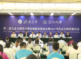 2017年6月24-25日,由yl永利集团304am会计系和台湾淡江大学会计系主办,山东龙山绿色经济研究中心(龙山智库)协办的“第二届生态文明审计理论创新发展论坛暨2017当代会计两岸研讨会”在澳门永利304网址召开。澳门永利304网址副校长王保贤,中国审计学会副会长刘力云,北京工商大学副校长谢志华教授,台湾政治大学马秀如教授,西南财经大学蔡春教授,兰州大学杨肃昌教授,台湾淡江大学会计系主任颜信辉教授,yl永利集团304am王爱国教授,会计之友主编笑雪,yl永利集团304am副院长冯素玲等领导和嘉宾出席开幕式。开幕式由yl永利集团304am副院长冯素玲主持,王保贤副校长和颜信辉主任分别代表澳门永利304网址和台湾淡江大学致欢迎辞。本次研讨会将主旨确定为“生态文明审计理论的创新发展”,深入探讨了当前经济形势下生态文明审计理论的未来发展问题。来自国内高校、科研院所、政府部门、杂志社、出版社等单位的专家学者以及yl永利集团304am会计系部分教师和学生共一百余人参加了本次会议,共收到应征论文80篇。中国审计学会副秘书长刘力云做了题为“资源环境审计:审计机关促进生态文明的重要途径” 的主旨报告。谢志华教授、马秀如教授、蔡春教授、杨肃昌教授、王爱国教授分别做了题为“关于环境审计的若干问题”、“生态审计与法务会计的交汇”、“生态文明审计目标与审计内容的思考”、“生态环境审计的区域空间格局与影响因素分析”和“生态文明审计之我见”的大会主题报告。主题报告围绕环境审计基础理论、生态环境审计和生态文明审计的最新发展,提出了很多原创性的新观点、新思路,对于审计理论研究与实践非常富有启发性、指导性和建设性。