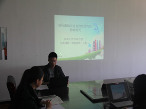 课题组的成员们来自本科和研究生不同年级,从去年十二月份开始不断收集资料,查阅大量的有关财税课题的相关文献,了解国内外关于税收的相关政策,为开题报告准备理论基础。在讨论会上,指导老师首先以税收激励对企业投资结构的影响研究为题和成员们共同商讨,课题成员热烈讨论,针对相关课题以及问题提出自己的看法和意见,两位指导老师细致耐心地为成员们一一解答,课题组成员准备对企业进行实地考察和收集数据,对原始资料做好分析整理,完成报告。最后,在两位指导老师的引导下,成员们分工选定研究内容。至此,本次讨论会圆满完成了开题报告。