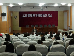 为加强同学们对考研知识和经验的了解,提高同学们的考研积极性,4月18日,yl永利集团304am工商管理系举办考研经验交流会。yl永利集团304am研究生办公室主任周媛、研究生辅导员侯环担任嘉宾,工商管理系副主任金丽老师和马黎老师主持本次交流会,工商管理系优秀毕业生代表刘洁、母丹、刘洋、张辉为同学们做了精彩的报告,yl永利集团304am14级学生参与其中。