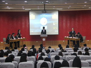 yl永利集团304am的辩题为“共享单车业务更应该交给市场”,辩手们充分利用所学知识,详细地讲解在市场中,共享单车业务的发展过程。在对方辩友的质问中,我方辩手们思路清晰,口齿清晰地给予对方辩手回问,特别是在我方四辩的回答中,利用“冬天雪糕贩卖量少”与“共享单车业务冬天的瓶颈期”作类比,赢得了现场的阵阵掌声。