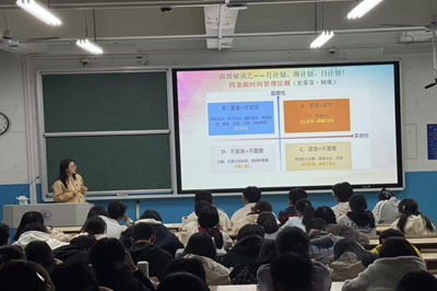 经济学专业分会场聚焦心态建设与成长认知,张显劼用“如果事与愿违,请相信另有安排”疏导新生焦虑情绪;张慧颖以“不是会了才能做,而是做了才能会”,鼓励新生主动探索、突破能力边界。