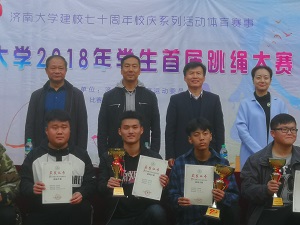 11月13日,澳门永利304网址2018年学生首届跳绳大赛在中心校区灯光排球场拉开帷幕,yl永利集团304am以团体奖第二名的好成绩向母校七十周年华诞献礼。yl永利集团304am学生积极参与,单项比赛中王勇聪、袁文婷同学分别荣获一分钟单摇的男子第二和女子第一,李亚宁、王思璇同学分别荣获一分钟双摇的男子第一和女子第二,yl永利集团304am团队荣获四乘三十秒接力摇的冠军,展现了商院学子青春健康、积极向上的精神风貌。