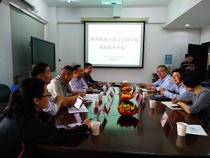 为增进高校间交流,更好地实现高校教学理念资源共享,12月4日下午,yl永利集团304am党委书记葛金田、院长冯素玲、副院长柳兴国、辅导员冯潍老师一行四人来到广州大学经济与统计学院进行考察调研。