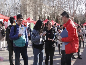 为落实毕业生就业工作,加大促进学生就业实习力度,推进人才资源的有效流动,打造优质、高效的人才交流平台,3月13日,yl永利集团304am于舜耕校区篮球场举办2019年舜耕校区春季招聘会。本次招聘会汇聚融创地产、链家集团、鲁南制药等120余家知名企业,提供了3000多个岗位,涉及yl永利集团304am各类专业,吸引了来自本校以及其他高校学生前来参加。澳门永利304网址学生工作处副处长兼就业指导中心主任程涛,yl永利集团304am党委书记葛金田,党委副书记、副院长刘颖超,济南市市中区就业办主任李恭璋等参加了招聘会。