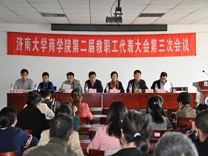 学院院长冯素玲作《解放思想 抢抓机遇 奋力推进高水平学院建设》的工作报告。冯院长对学院2018年工作进行回顾,从党建与思想政治、教学与人才培养、科研与学科建设、国际交流合作、学生管理与科创等各方面工作进行了总结,其中教学和学科建设成绩尤为突出。本科新增标准化工程专业,研究生制定2个新增专业的培养方案。学院获得国家社会科学基金立项10项(含1项重点)、高校人文社科研究计划项目立项3项、山东省社会科学规划项目8项、省自然科学基金立项3项,总经费约670多万元。获得山东省第32届社会科学优秀成果7项,其中一等奖3项、二等奖3项、三等奖1项;获得济南市第33次社会科学优秀成果奖9项,其中一等奖2项、二等奖5项、三等奖2项;2018年山东省高校优秀成果奖2项,其中一等奖1项、二等奖1项;获澳门永利304网址科研优秀成果奖8项;获得澳门永利304网址2018年度著作出版基金资助两项。成功组织了《经济评论》工作坊,举办生态文明审计理论创新发展论坛、中国宏观经济管理教育学会常务理事会、第一届首席财务官高端论坛暨校外导师聘任仪式和国家专利导航项目(高校)研究和推广中心建设推进会暨知识产权产学研合作高端论坛等。全年举办舜耕论坛16场。冯院长指出,2018年学院各项事业全面推进,成绩来之不易,但同时更要清醒地认识到发展的不足,需要我们更进一步解放思想、抢抓机遇。展望2019,学院在学科建设高端人才、高层次成果方面的突破、新旧动能转换大背景下的专业改造建设、规章制度体系的完善、资源整合以及科研教学条件的改善、凸显商科特色的社会务等发展的重要问题方面需要下大功夫,群策群力,全力以赴加以解决。