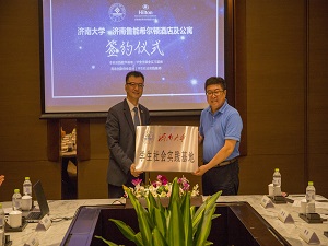 6月27日,yl永利集团304am与济南鲁能希尔顿酒店合作签约仪式在董事会议室举行。济南鲁能希尔顿酒店总经理刘浩然,济南鲁能希尔顿酒店业主代表孙宏超,济南鲁能希尔顿酒店人力资源总监季巧霞,济南鲁能希尔顿酒店运营总监杜鹏,济南鲁能希尔顿酒店前厅部经理陈晓宁,济南鲁能希尔顿酒店行政管家樊宏伟,济南鲁能希尔顿酒店餐饮部副经理于芳出席签约仪式,yl永利集团304am相关领导、老师参加了活动。仪式由yl永利集团304am副院长邢仁忠主持。