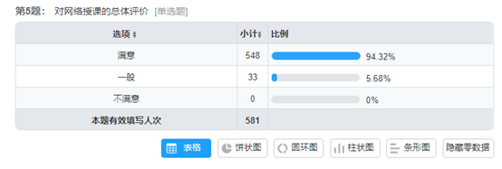 另外,为了更好地了解教师及学生对线上教学的评价,督导组请宋磊老师设计了《yl永利集团304am教师网络授课情况调研》、《yl永利集团304am网络课堂情况调研》两个小问卷,由任课教师和学生课后填写提交。