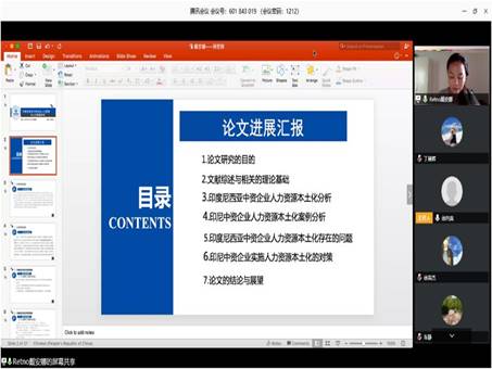 为此,研究生工作办公室统筹,应用经济学、工商管理、管理科学与工程三个学术型专业负责人按照《预案》要求积极部署、合理安排,将37名研究生(其中包括7名留学生)分为5个组,采用腾讯会议视频的形式,共聘请27名校内外教师为预答辩专家。研究生院进行了督导,yl永利集团304am2018、2019级研究生及部分兄弟学院的师生共200余人旁听了本次预答辩。