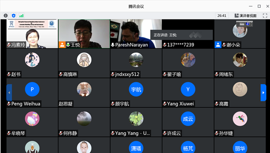 亚太经济学会主席、澳大利亚迪肯大学金融计量经济研究中心主任、《Economic Modelling》主编Paresh Narayan做主旨演讲,综合各个不同行业在疫情中表现出的数据模型,讨论了现阶段新冠肺炎疫情爆发对于澳大利亚股票市场影响。