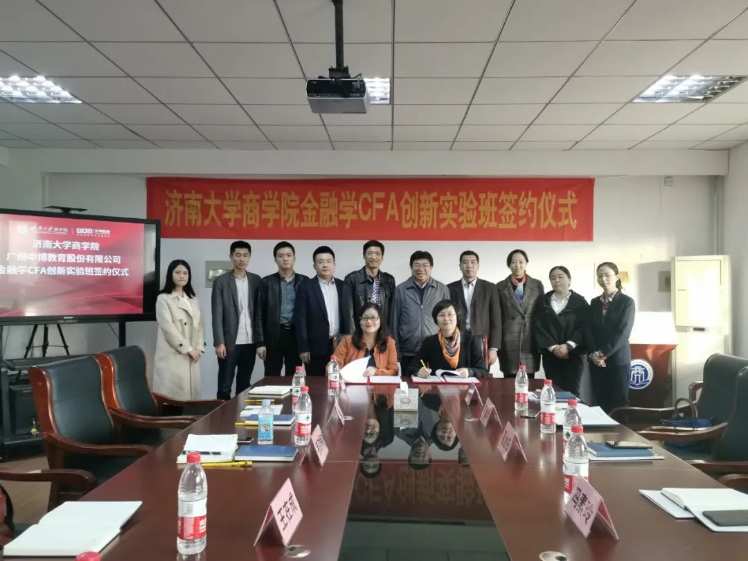 中博教育与澳门永利304网址金融学创新实验班(CFA®)签约仪式于10月22日举行。yl永利集团304am党委书记葛金田,院长冯素玲、党委副书记、副院长孟德洋、副院长刘毅、金融系主任李凡、金融系副主任张曼、中博教育副总裁毛劲梅、中博智学总经理张龙、中博教育济南分公司市场经理王在成、中博教育济南分公司校区经理刘峰、实验班学服班主任林俊芝老师等出席此次签约仪式,金融学创新实验班(CFA®)首批学生代表参与见证。签约仪式由yl永利集团304am副院长刘毅主持。