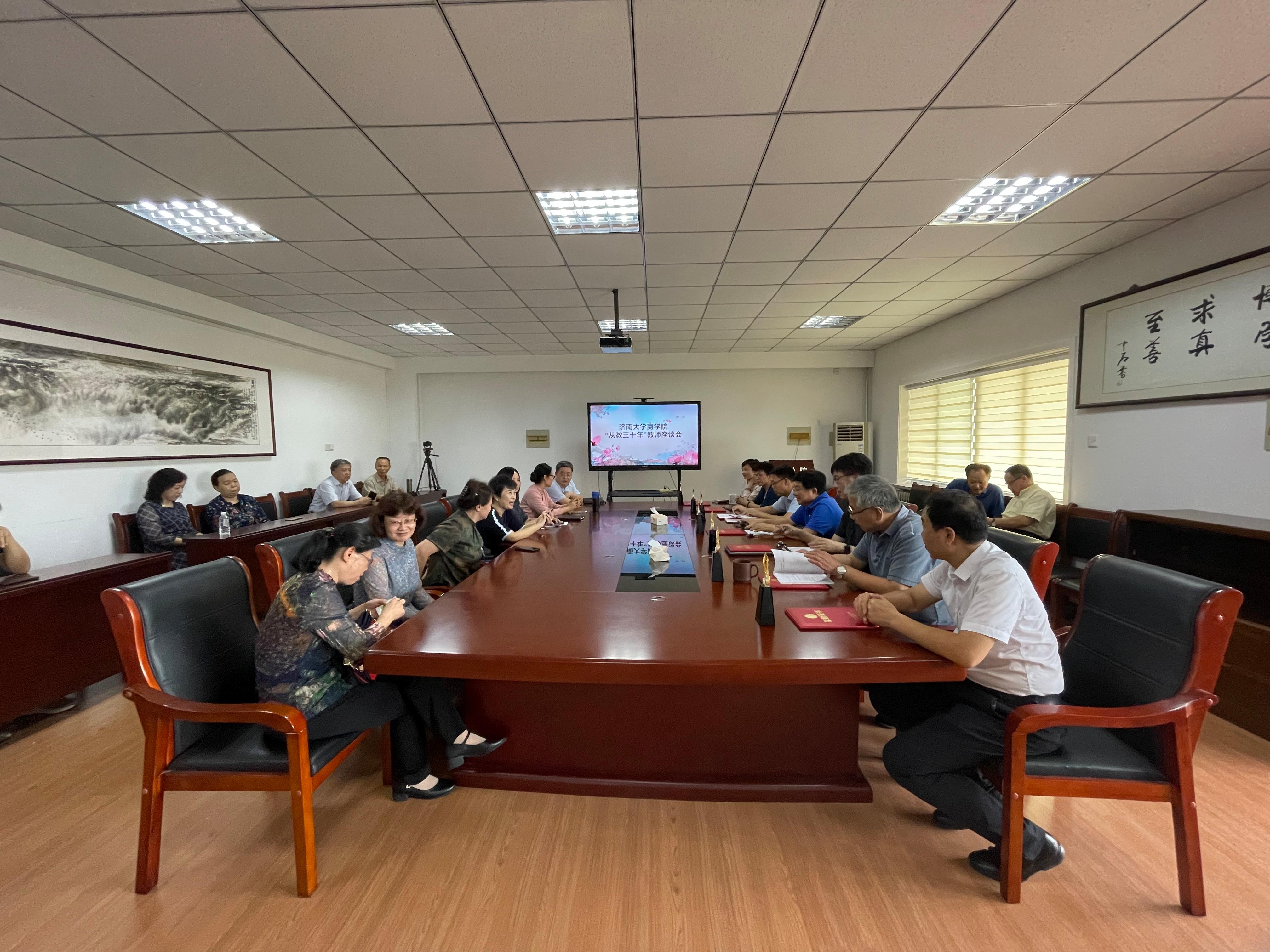 座谈会上,与会教师纷纷发言,深入交流,感触良多。信凤芹教授作为从教三十年教师代表发表了感言,信教授表示从教三十年,赶上了国家改革开放的好时机,见证了学校辉煌的发展历程、见证了学院从合院至今的高速发展,希望作为老教师能够继续发挥传帮带作用,为学校发展贡献力量;陈学中教授表示在岗三十年,是学校蓬勃发展的三十年,充分感受到了人民教师的这份光荣;赵薇教授表示从教三十年早已融入济大,今后将继续用自己的光与热去引导每个学生,用生命去感染生命;王吉霞副教授结合自身多年从教经验畅谈了教师在立德树人中所发挥的重要作用,并表示感谢学校和学院对他们的关怀和鼓舞。