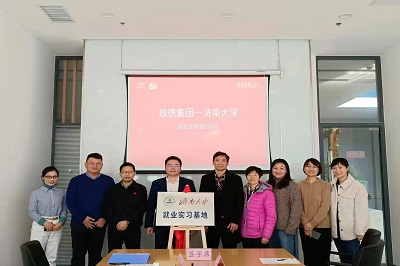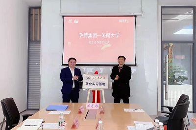 玫德集团人力资源总监张新涛介绍了集团的建设情况、发展历程与主要业务,强调了企业的发展愿景与迫切的用人需求,期待在疫情防控新形势下多措并举开展校企合作模式,以吸引更多的学生关注并加入到民营企业的发展蓝图中,实现校企合作互惠互赢的新格局。随后,双方举行了澳门永利304网址毕业生就业实习基地的签约授牌仪式。