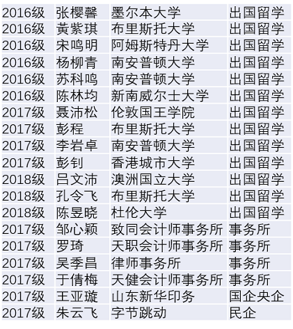 2016,2017,2018级CIMA实验班三届毕业生出国和升学率达到40%以上,优质就业率达到70%以上。