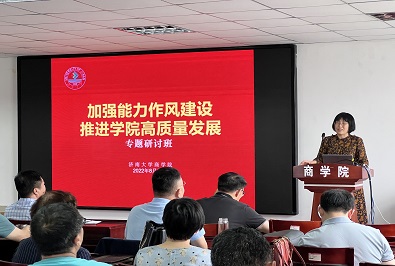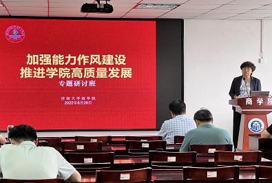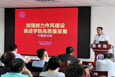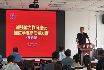 为贯彻落实学校新学期全校领导干部会议精神和学校关于加强作风建设的相关要求,8月28日,yl永利集团304am在经管楼举办“加强能力作风建设 推进学院高质量发展”专题学习研讨会。研讨会包括主题党课、分组研讨、交流发言、视频教学等四个环节。yl永利集团304am党委领导班子、学术委员会和本科教学指导委员会成员、教师党支部书记、系主任、学术教学骨干教师代表、职能部门负责人、辅导员、班主任代表、MBA中心和MPAcc中心等同志参加会议。会议由yl永利集团304am正处级组织员邢仁忠同志主持。