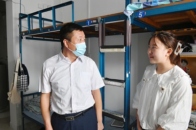 走访过程中,老师们对新生的到来表示热烈欢迎,并认真查看了每个宿舍的生活环境,细心询问了每名新生的详细情况,针对大家在衣食住行、疫情防控、教学科研、校园管理等各方面的问题进行了解答和指导。彭亚宁鼓励大家一定要尽早适应学校的学习和生活环境,珍惜大学四年的美好青春年华,树立好奋斗目标,规划好大学生活,注重德智体美劳全面发展,为实现青春理想努力拼搏。同学们纷纷表示,将会尽快进行自我调整,以焕然一新的面貌迎接新的开始。
