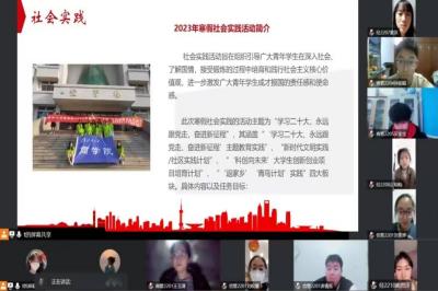 会议伊始,yl永利集团304am青年志愿者协会外宣部负责人田泮学同学介绍了此次寒假社会实践的活动主题——“学习二十大,永远跟党走,奋进新征程”,并详细讲解了本次社会实践所涵盖的“‘学习二十大、永远跟党走、奋进新征程’主题教育实践”、“新时代文明实践/社区实践计划”、“‘科创向未来’大学生创新创业项目培育计划”、“‘返家乡’‘青鸟计划’实践”四大板块的具体内容及其任务目标;随后,办公室负责人王建安同学向志愿者们简述了今年yl永利集团304am社会实践的优秀成果,分享了自己参与社会实践活动的经历与感受并号召大家积极参与本次社会实践,在为人民服务中贡献青春力量,领会党的二十大精神;最后,实践部负责人高惠娟同学针对志愿者们提出的问题进行了现场解答,并提醒志愿者们认真做好行程活动安排工作和社会实践 总结工作。至此,2023年寒假社会实践活动线上启动仪式圆满结束。
