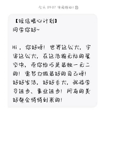 在活动过程中,同学们精心编辑短信内容,并将短信和自己的手机号码一并发送到yl永利集团304am心理协会的活动邮箱。大家在短信中编辑好自己想说的话,表达对他人的真心祝福,每一则短信都倾注了发信人的真情实意。本次活动以短信为媒介,以发送一则承载着真情的言语为主要内容,由工作人员线上统一收集短信稿件并进行审核整理,最后将这些治愈人心的温暖话语随机发送到另一位参与者的手机上。也许同学们彼此之间并不相识,却也无法阻碍温暖的传播。所有参与活动的同学都会收到一段来自陌生人的亲切问候和鼓励话语,为大家在校期间的学习生活加油鼓劲。