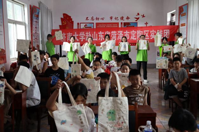 振兴之策,教育先行。乡村教育作为乡村社会发展中的重要因素,是乡村振兴的基石,通过精神文化建设和培养优秀人才为乡村振兴赋能,因此实践团结合袁堂村教育所需,联合菏泽花城社工、菏泽新融媒体中心、定陶民政局儿童福利科和马集镇派出所,为袁堂村及周边中小学生设立支教课堂,架设暑期知识衔接的桥梁。在学业辅导之外,实践团同时开设特色课堂,为乡村留守儿童拓宽视野,推动城乡教育均衡,提升乡村教育质量。