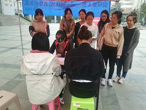 为了让更多的人了解国际盲人节,关注盲人生活,关爱盲人群体,10月16日,yl永利集团304am青年志愿者协会于经管楼前广场举办“我是你的眼,陪你看世界”志愿者活动。青协志愿者和学院学生积极参与其中。