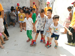 活动内容共有绑腿走、无敌风火轮、撕名牌等游戏,活动举办的宗旨是增强同学们的团结协作意识。孩子们虽然年纪小,但参与度十分积极并乐在其中,在老师的帮助下,安全顺利的完成了游戏。粘报纸游戏分为两队进行,准备工作大部分孩子都积极参与,很好的协作完成任务,两队之间的比拼也是很激烈,在老师的帮助和同学的鼓励下,两队都顺利完成了游戏。孩子们最喜欢的是撕名牌游戏,这个游戏进行的时候天气很热,孩子们也都很累了,但是他们还是很有激情,组内有分工,令大家欣慰的是他们很守规矩,并没有发生安全问题,看着他们灿烂的笑脸,我们也毫无顾忌的笑着。最后团队队员给每一个小组的同学颁发了各种奖状,以激发他们的活动积极性,还为活动中表现良好的同学分发了小奖品。