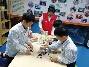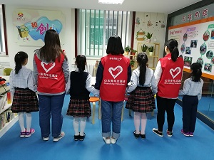 活动开展前,青协负责人联系基地老师,商量活动内容及安排等事宜,并且号召志愿者们排练舞蹈,为活动的顺利开展做好充足准备。活动开展当天,青协成员穿上学院的志愿者服装及佩戴绶带,并且借来活动拍摄设备,随后,赶到大观园基地开始拍摄宣传内容。镜头前,志愿者们耐心地指导着小学员们的动作,讲解音乐的节拍,小学员们也十分认真地按照志愿者们所说的来排练。舞蹈动作排完之后开始正式录制,视频中,他们脸上洋溢着灿烂的笑容,身体跟着音乐有节奏地舞动着,动作整齐而不失活力。为了强化宣传效果,青协决定将拍摄的宣传视频上传到最近非常受年轻人追捧的“抖音”APP上,果然,吸引了大量人的关注,许多人点赞并且留言,表示他们非常支持志愿者们的拍摄初衷,这无疑是加深了他们对于志愿服务精神的了解,原来“奉献、友爱、互动、进步”可以被这样生动有趣地诠释出来。最后,志愿者与小学员们一起合照留念以此庆祝本次活动的顺利开展。