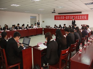 本次论坛由“共享举措,取长补短”、“展望未来,寻求突破”、“群英荟萃、大放异彩”三个板块组成。论坛伊始,我院学习部部长宋增禄阐述学风建设的内容及成效,提出在学分建设道路上的阻碍。“共享举措”板块中,各院学习部部长分享了各自内部的管理体制、工作体制机制,以及工作过程中的工作总结。值得一提的是,各学院均提出了在学风建设中的建设性举措,如文学院开展的孔子学堂、体育学院举办的体育文化艺术节,以及各学院积极开展的系列考研讲座和分享会等。“展望未来”板块主要就今后各院对于学风建设的想法进行交流,各院叙述了对于学院学风建设未来发展的设想以及意见建议,“早晚自习”、“课堂无手机”等活动得到了各院学习部的一致认可。“群英荟萃”板块主要针对各院在学风建设中遇到的问题,各院依次提出问题,由其余学院自由回答,一问一答的过程中,问题得到了解决,为未来学风建设的道路指明了方向。论坛最后,我院学习部发言总结,至此,本次交流论坛圆满结束。