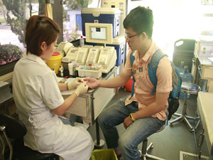 活动前期,我院便在全校范围内,以张贴海报、微信朋友圈推广、班级动员、制作展板等形式,力将“献一滴血,救一个人”的思想深入人心。上午8点,青协工作人员负责组织现场秩序,包括向同学们讲解相关献血安全卫生常识,献血人员信息登记,帮助医护人员进行血压测量、血型化验,无偿献血证书发放等,并给予献血志愿者们力所能及的帮助。让人欣慰的是,献血活动现场,还有部分老师前来献血。献血过程中,工作人员尽职尽责,他们为志愿献血的同学们送上一杯热奶、一杯温水,或是送上几句关怀的问候,让爱心也温暖着每一位献血志愿者。献血志愿者的青春热血和爱心满怀,使整个活动现场的气氛达到高潮,相信每个志愿者的心里充满献血后的光荣和自豪。