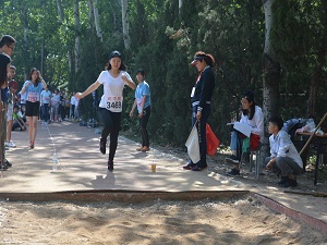 在紧张而激烈的决赛中,选手们在进行着赛前热身准备,高抬腿,短距离跑,争取以最佳的状态迎接比赛。我院同学之间互相加油打气,气氛融洽。比赛开始后不久,同学们的出色表现引得观众们掌声连连。比赛过程中,志愿者认真细致地帮助保持着沙地的平整,裁判员准确无误地判定成绩,体育老师在旁用专业技术指导运动员,这些都为运动员们提供了良好的比赛环境。比赛中,我院同学矫健灵活的助跑,以正确的姿势完成了起跳腾空,划出一道优美的弧线,最终稳稳的落地缓冲,姿势准确完美。经过轮番的角逐,我院同学荣获跳远比赛取得傲人的成绩,为商院争光添彩。