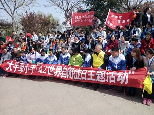 为增强同学们对孤独症患者的关爱,增加同学们参与社会实践经验。4月2日,yl永利集团304am青年志愿者协会在大学仕花园鲁贤社区居委会举行大型互动活动。