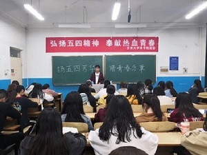 活动伊始,现场共青团团歌《五月的花海》响起,正如歌中所唱“我们是初升的太阳,用生命点燃未来;‘五四’的火炬,唤起了民族的觉醒”,学生作为青年人的主力军,应积极学习五四精神。接着,活动主持人简要讲解五四爱国运动的历史事件,引发学生们对五四精神的思考。一个个五四运动优秀人物,一场场充满爱国情怀的青年运动,都向青年学生倡导要树立远大理想、热爱伟大祖国、担当时代责任、勇于砥砺奋斗、练就过硬本领、锤炼品德修为,认真学习国家最需要的本领,将来走上国家最需要的岗位、干国家最需要的事业,把自己的“小我”融入祖国的“大我”、人民的“大我”之中,与时代同步伐、与人民共命运,做新时代的“追梦人”“圆梦人”。