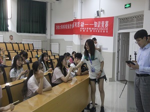 此次知识竞赛分为两个部分:笔试部分和抢答部分。在主持人做完简洁而明了的开场白后,答题正式开始,每个同学都在认真仔细的答题,考场秩序良好。30分钟后,同学们有秩序的交上试卷离开考场。很多同学表示试题有许多新颖之处,出现了很多新颖词语,在一定程度上增加了试卷的难度,也增加了同学们对宿舍安全隐患的认识和对宿舍安全重要性的了解。抢答部分最为精彩,大家争先恐后,踊跃举手争抢回答的机会。在该环节中,张汣滢、胡欣茹同学表现得最为突出,在抢到问题最多的同时,保证了近乎完美的正确率,使得两位同学在本环节中取得了巨大的优势。经过层层的竞争与合作,郑丽、张汣滢等同学获得优胜奖。最后,此次知识竞赛在热烈的掌声中圆满落下帷幕。