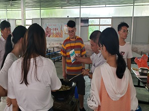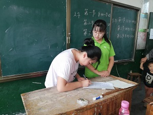 各小组下午便正式开始了寓教于乐的教学活动,我们以游戏的方式、轻松,诙谐的语言营造出热闹的氛围,不仅为学生细心讲解数学题,还向小朋友们介绍历史小故事、地理小常识。小朋友们都把手举得高高的,向我们的志愿者们提问一个又一个的问题,大家都兴高采烈地你一言我一语。下课后,小朋友们围在志愿者身边嬉戏、玩闹。我们实践队后勤组则提前买好了食材,在厨房里忙得不可开交,只用心为大家做好可口的饭菜。