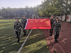 下午两点半,首先进行2019级新队员考核活动。随后,参加授装仪式的全体成员在足球场集合并举行会旗升旗仪式。紧接着,参与授装仪式的新队员奏唱歌曲。演奏结束后,会长宣布授装仪式正式开始,协会成员授予新队员崭新的军装。授装结束时,活动负责人带领所有新队员面向会旗,高举右拳,以高昂的姿态宣读庄严的誓词。最后,协会会长赵午君对新队员顺利领取迷彩装表示衷心祝贺并表达了对队员们在风暴军团未来发展的殷切希望,同时号召新队员担当起风暴军事爱好者协会发展的重任。