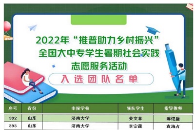 7月6日,由教育部语言文字应用管理司、共青团中央青年发展部联合开展的“推普助力乡村振兴”全国大中专学生暑期社会实践志愿服务活动公布了入选的958支实践团队,yl永利集团304am党委副书记、副院长袁海占老师指导由李宗晟同学领队的“红色筑梦实践团”社会实践团队和yl永利集团304am团委书记陈恺盛老师指导的由姜文菲同学领队的“语你同行组”社会实践团队成功入选。