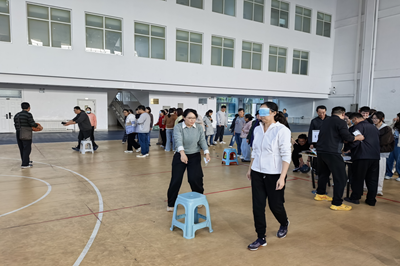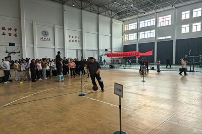 本次活动以“悦动金秋·心向暖阳”为主题,设置集体与个人两大类别共4个竞技项目,兼顾协作性与趣味性。集体项目中,“盲行接力”考验队员间的信任与指令默契,蒙眼队员在同伴引导下跨越障碍;“欢乐踩气球”现场气氛热烈,队员们高效配合完成吹球、踩球任务;“气排球团体赛”采用淘汰赛制,各队队员攻防有序,展现出强劲的团队协作能力。个人项目“篮球绕桩投篮”则让教职工们一展运动风采,运球、绕桩、投篮动作流畅,充分彰显活力。